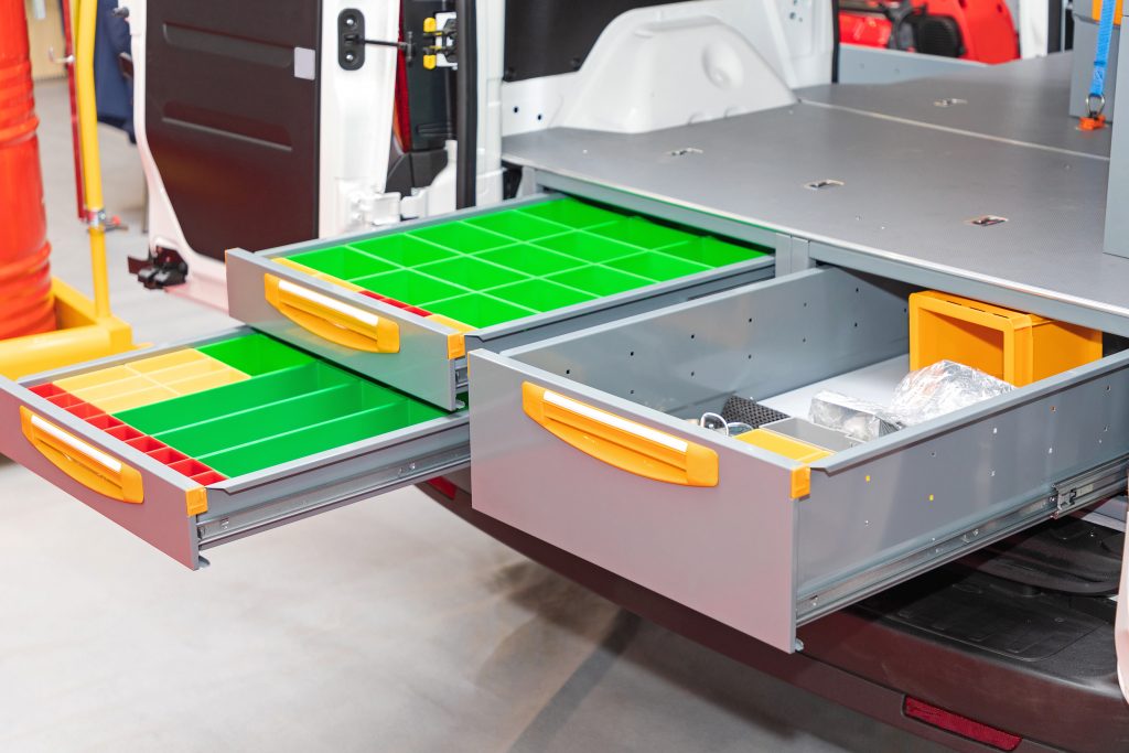 Can I install these accessories myself? While some small bins are easy to place, we recommend professional installation for shelving and partitions. Our professional technicians ensure that everything is bolted securely to the vehicle’s frame. This prevents the gear from coming loose during an accident or heavy use.